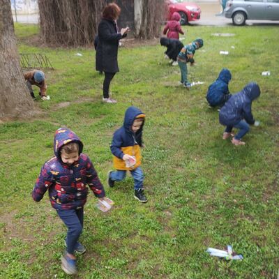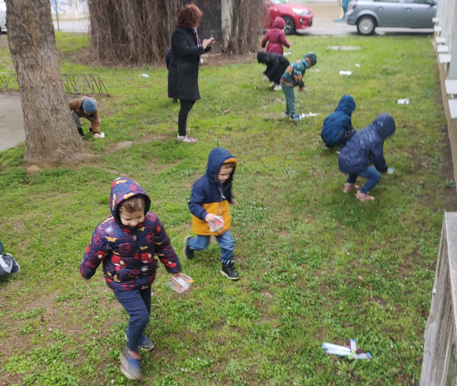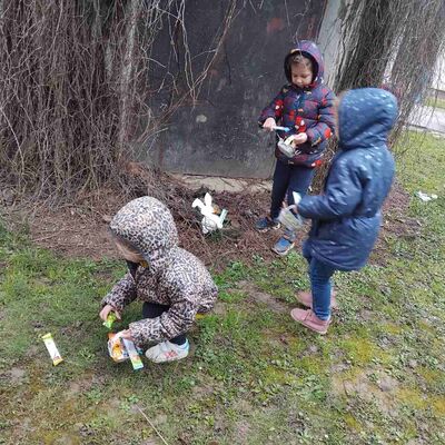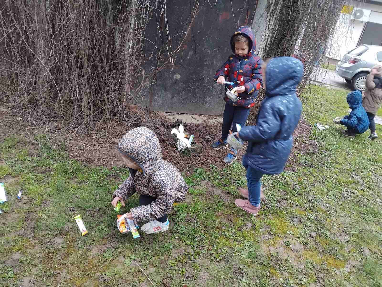 Dolazeći na posao odgojiteljica je vidjela malenog zečića kako skakuće oko vrtića. Odmah je pozvala svoje Gumbiće koji su s košaricama krenuli u potragu u nadi da je to pravi Uskršnji zeko.
