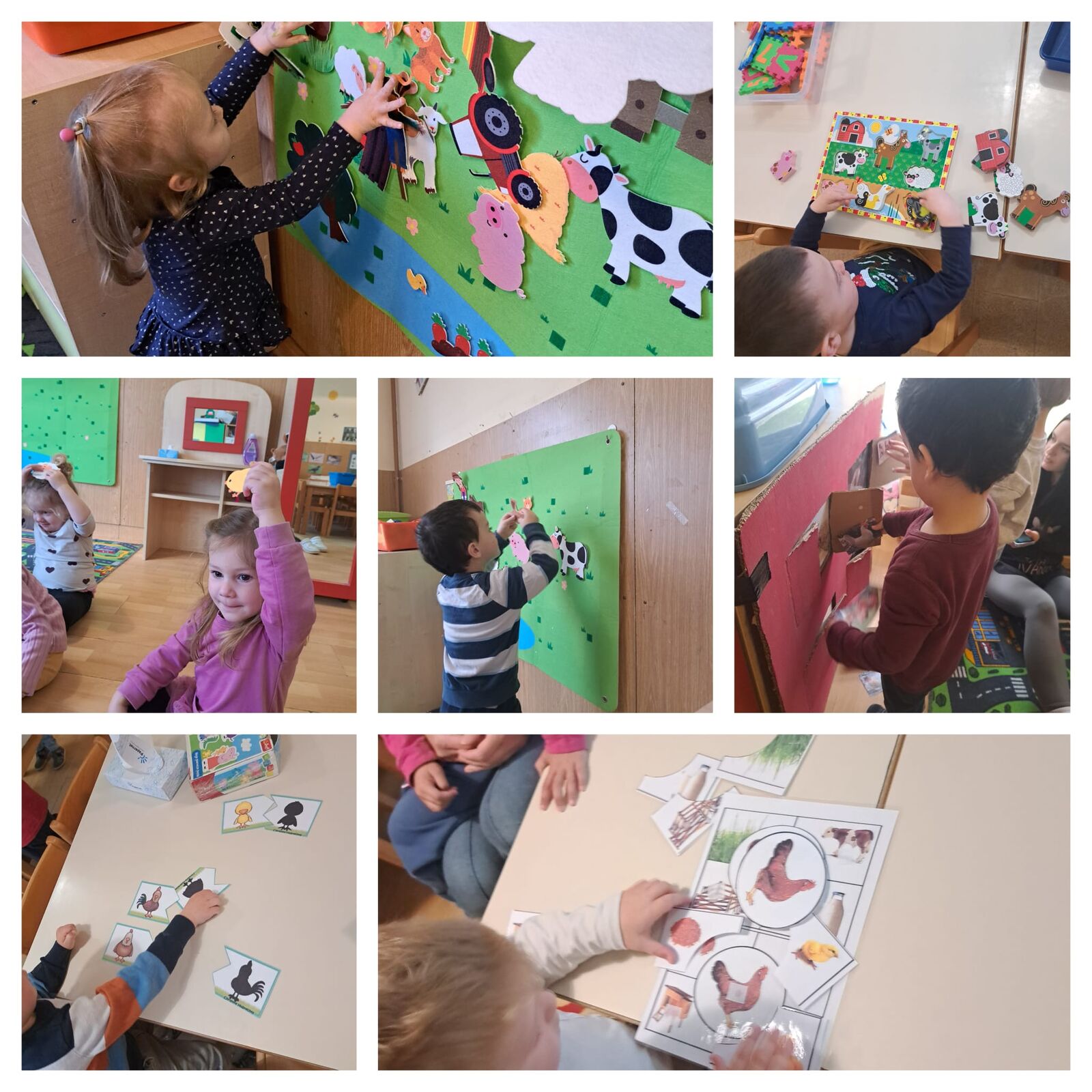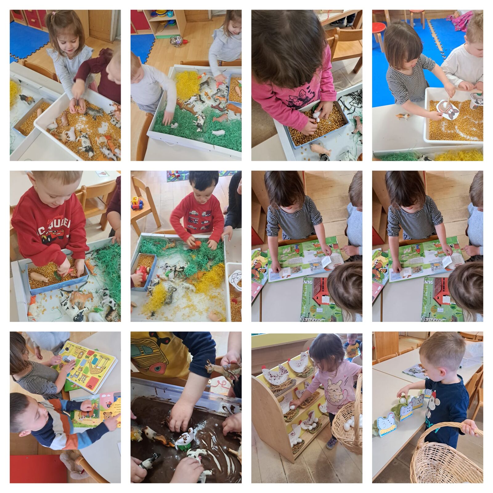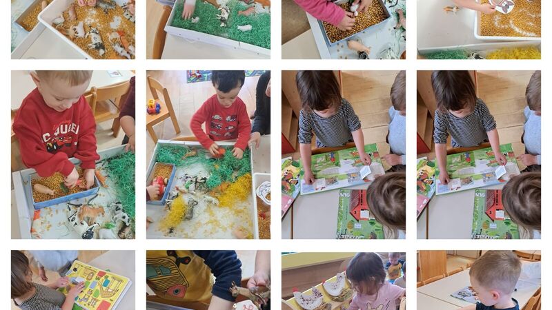 Poseban naglasak stavljen je na senzorne kutije u kojima se ponuđeni materijali koji su predstavljali prirodno okruženje domaćih životinja. Djeca su se igrala životinjama na travi, kukuruzu i sijenu, istraživala teksture i materijale. Kroz igru u "blatu" i simboličko kupanje životinja razvijala su maštu i slobodu izražavanja, dok su hranjenjem učila o osnovnim potrebama životinja i brizi za njih.