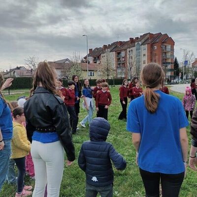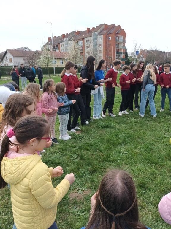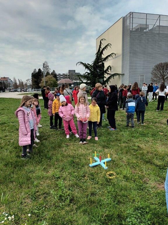 Zabavne igre nošenje jajeta na žlici, „Pucaj-pucaj“ (igra loptom), bacanje koluta na postolje i zajednička igra Hokoš- bokoš zajedno s učenicima iz Španjolske i koprivničkim gimnazijalcima učinili su naš dan zabavnim i aktivnim.